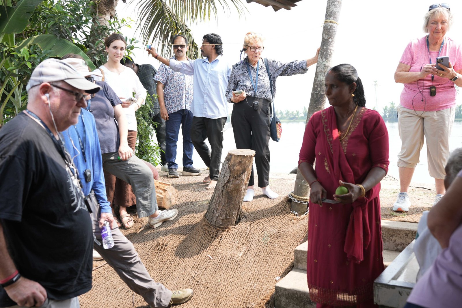 The guide translates. Most village women speak Malayalam, maybe some Tamil or Hindi. Rarely English. Translation makes conversation possible.